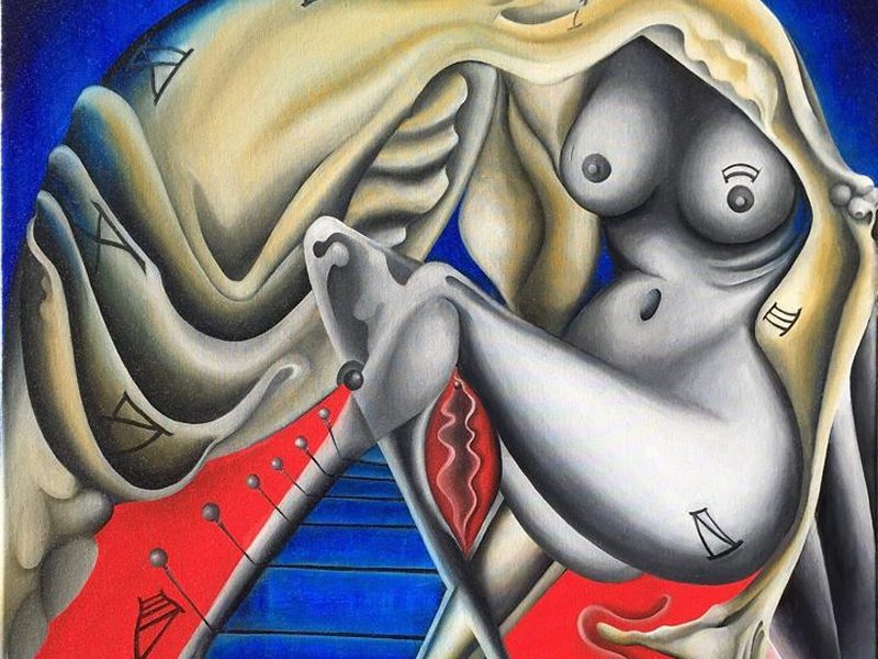 Du tableau isolé au polyptyque, chaque oeuvre est une triangulation entre un vocabulaire personnel de symboles singuliers, des courbes et symétries dans un rythme interne harmonique sur un gimmick de légende fantasmatique peuplée de chimères ondulatoires fascinantes et magnétiques.